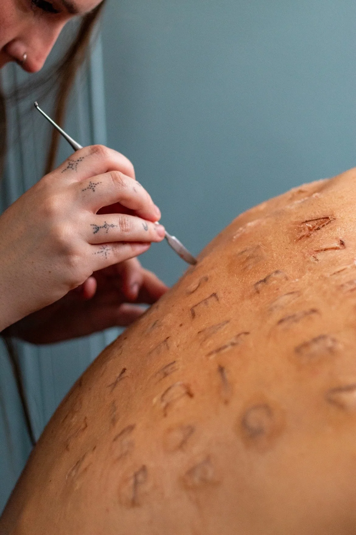 Just Right 2022 - Writer, Director, Lead SFX MUA and Designer - An experimental narrative horror short that follows a kidnapped woman who is force fed porridge by bear-like entities until she is turned into meat.